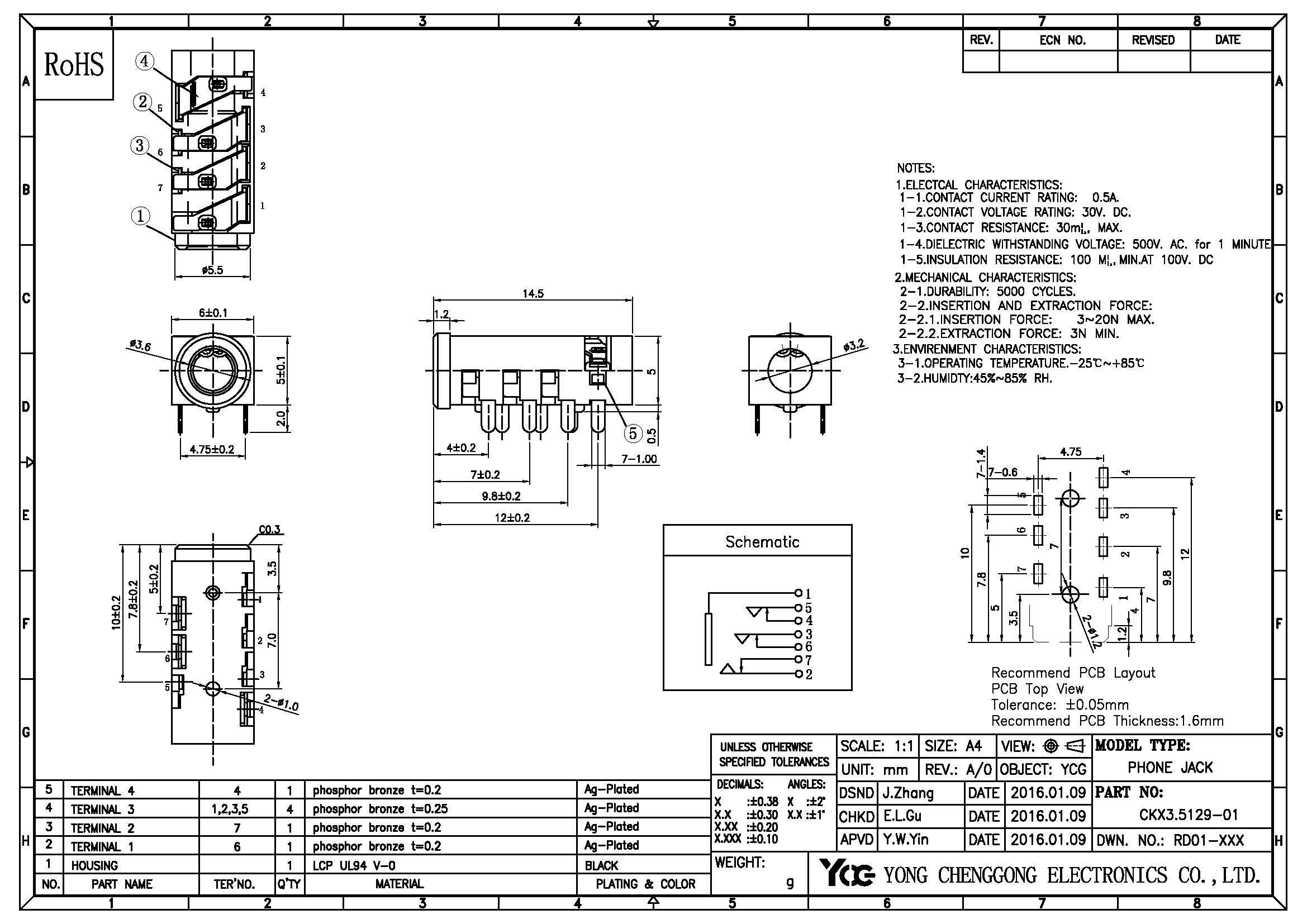 CKX3.5129 PHONE JACK φ3.6mm,R/D,CH2.5mm,3 Poles,BLACK