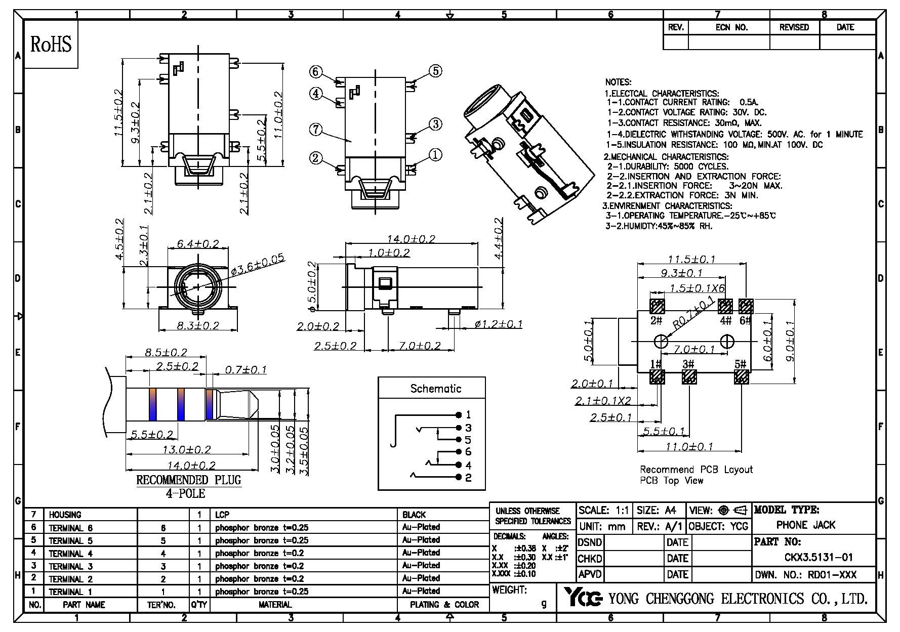 CKX3.5131 PHONE JACK φ3.6mm,R/S,CH2.3mm,4 Poles,BLACK
