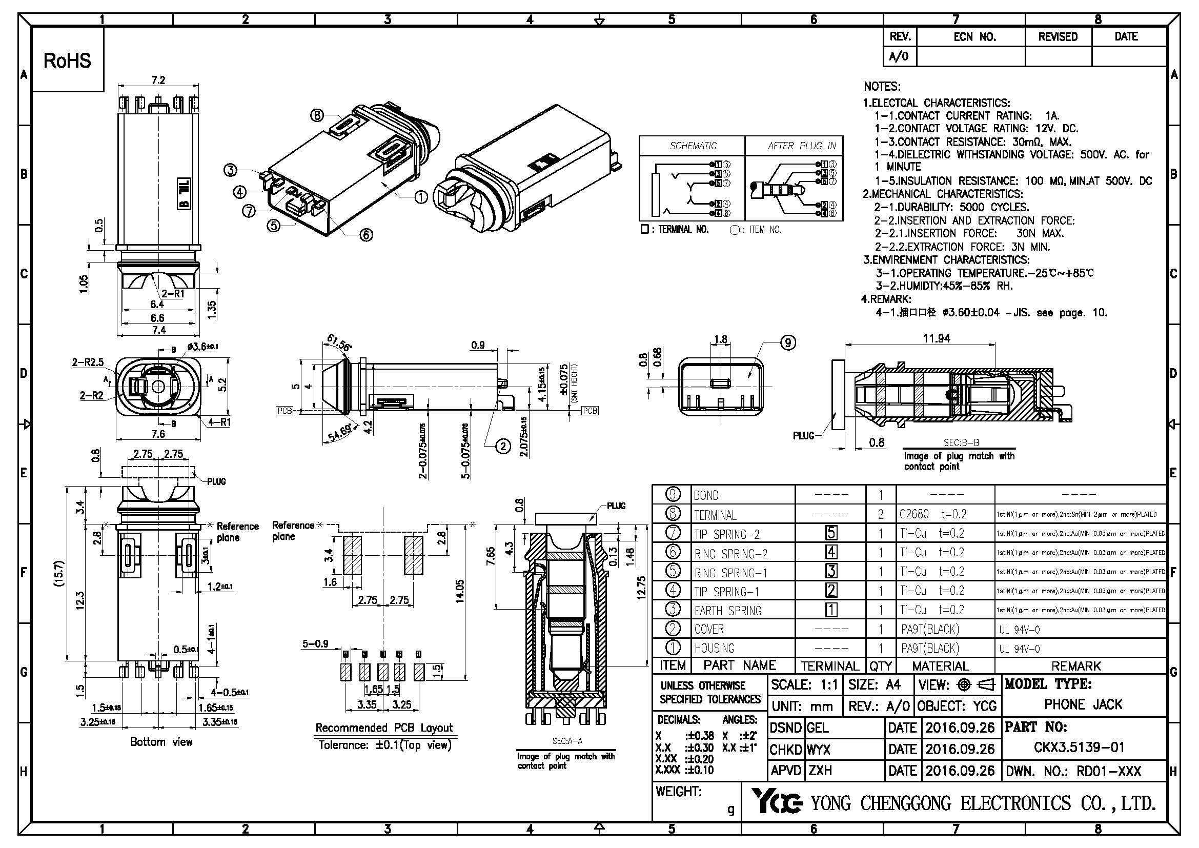 CKX3.5139 PHONE JACK φ3.6mm,R/S,CH2.15mm,4 Poles,BLACK,WATERPROOF