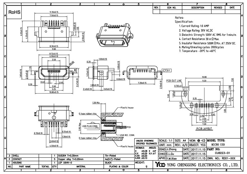 MICRO USB B TYPE 5P HEAVY PLATE BLACK