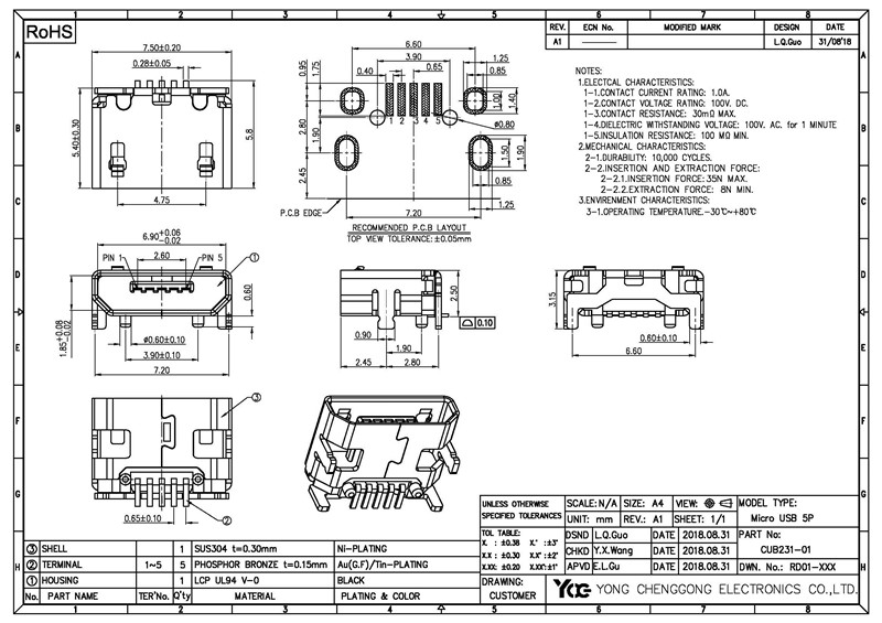 MICRO USB B TYPE SMD 5P BLACK