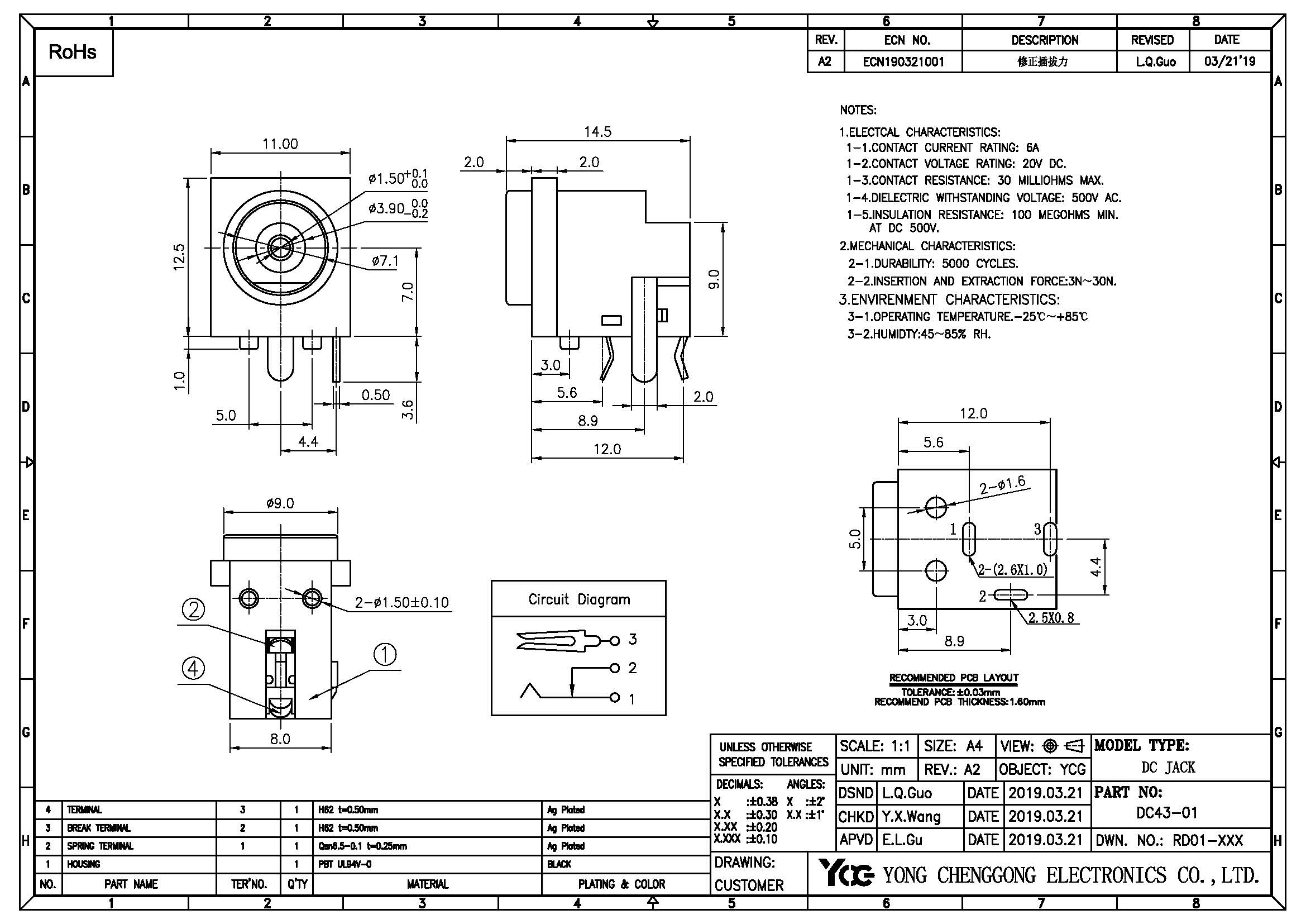 DC POWER JACK R/A DIP