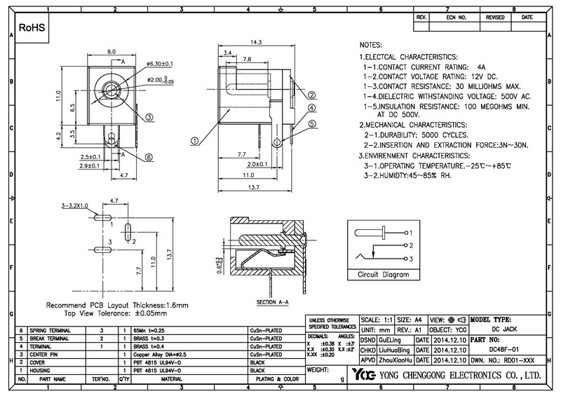 DC POWER JACK R/A DIP,φ1.45mm、φ1.65mm、φ2.0mmφ、2.50mm