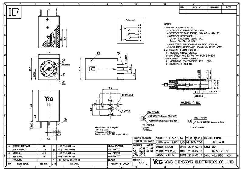 DC POWER JACK, V/T DIP, H15.3mm,With Shell