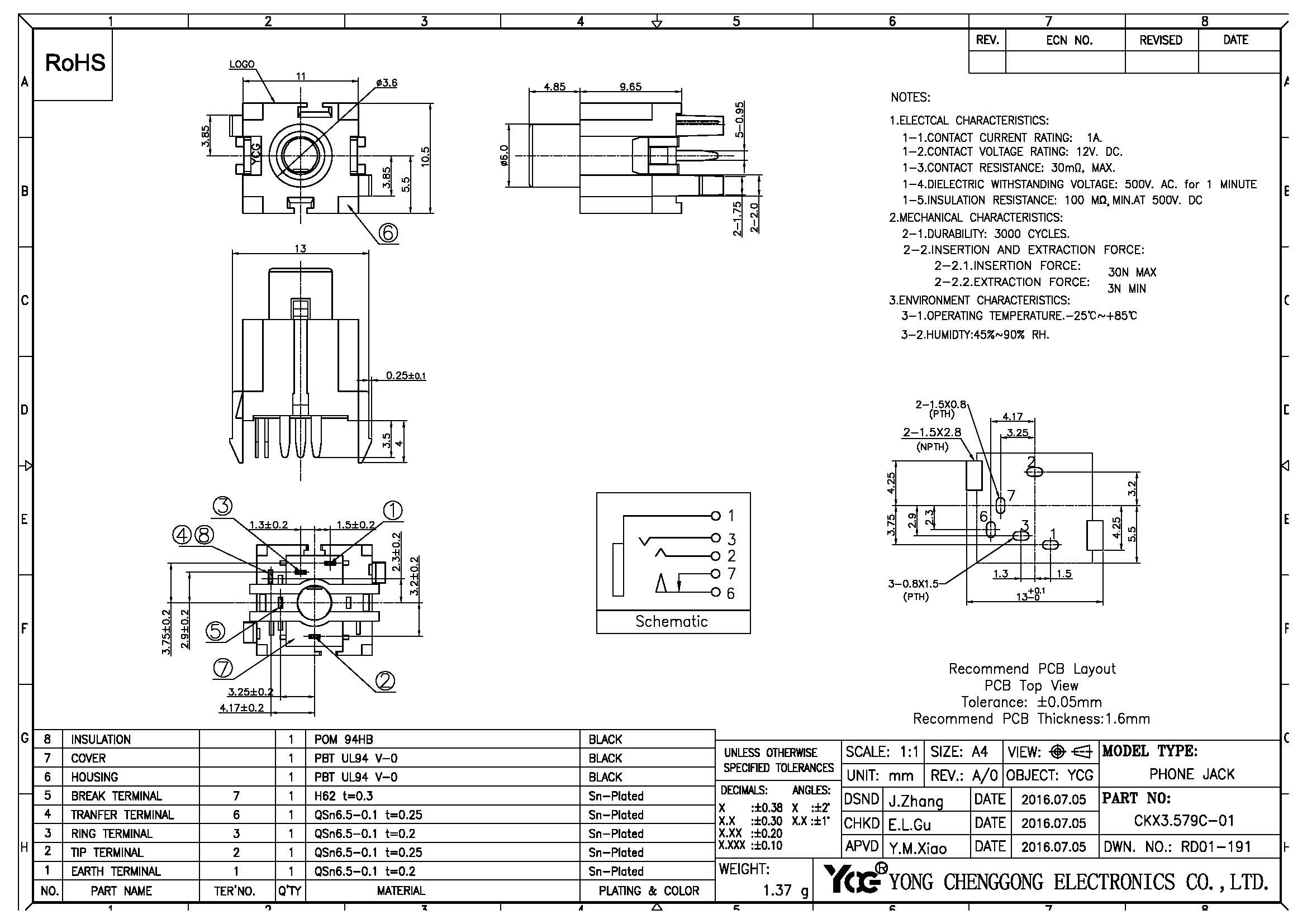 PHONE JACK φ3.6mm,V/D,H9.65mm,4 Poles,BLACK