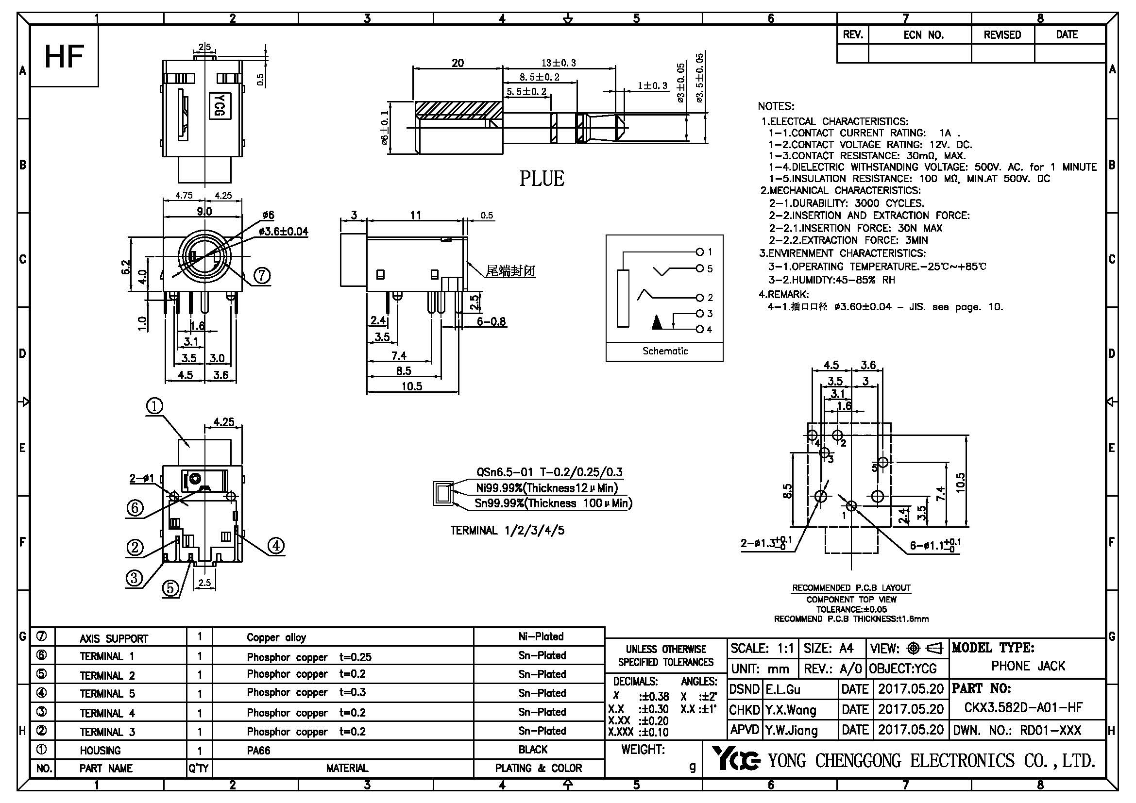 PHONE JACK φ3.6mm,R/D,CH4.00mm,3 Poles,BLACK&BLUE(OPTIONAL)