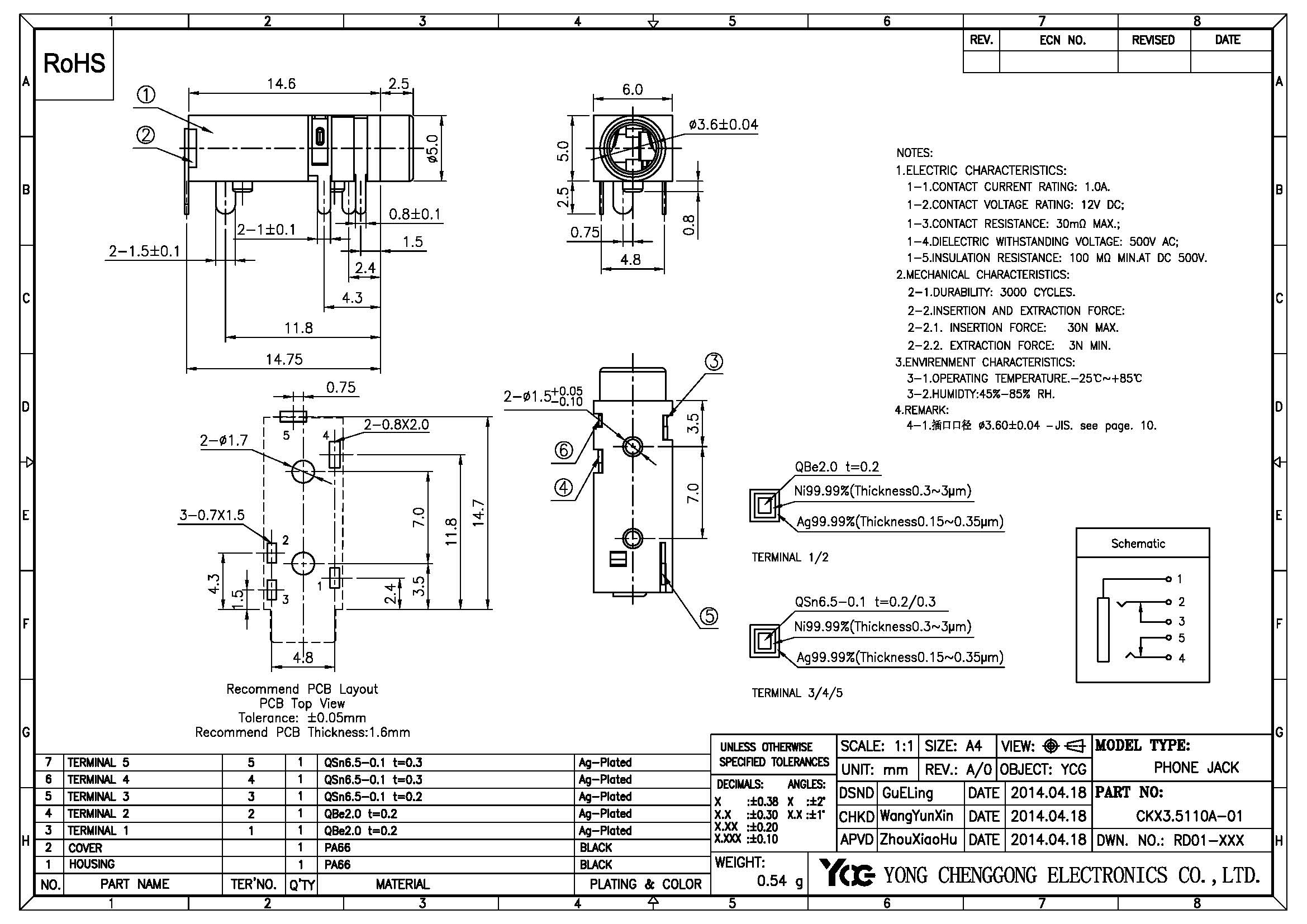 PHONE JACK φ3.6mm,R/D,CH2.5mm,3 Poles,BLACK