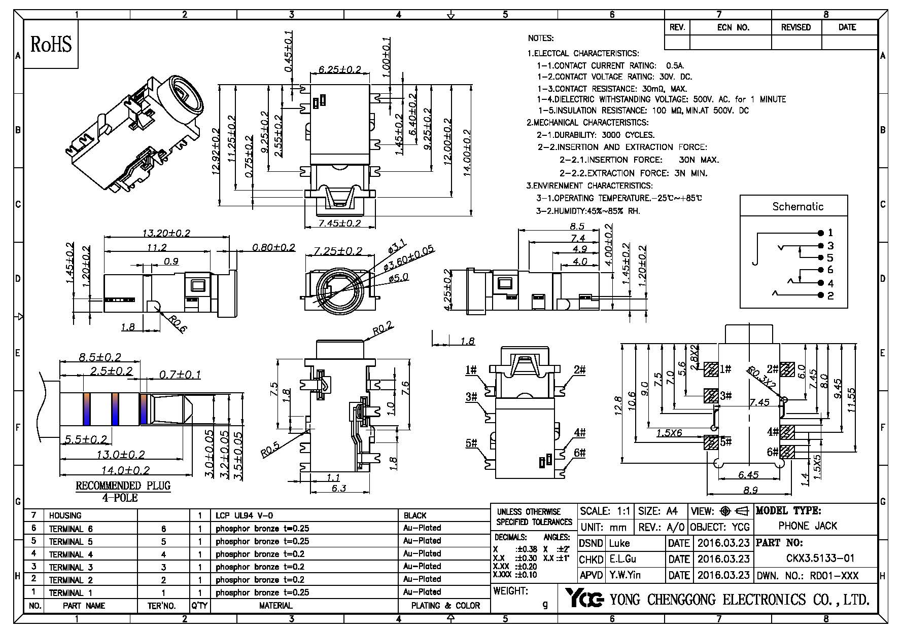 PHONE JACK φ3.6mm,R/S,CH0.8mm,4 Poles,BLACK