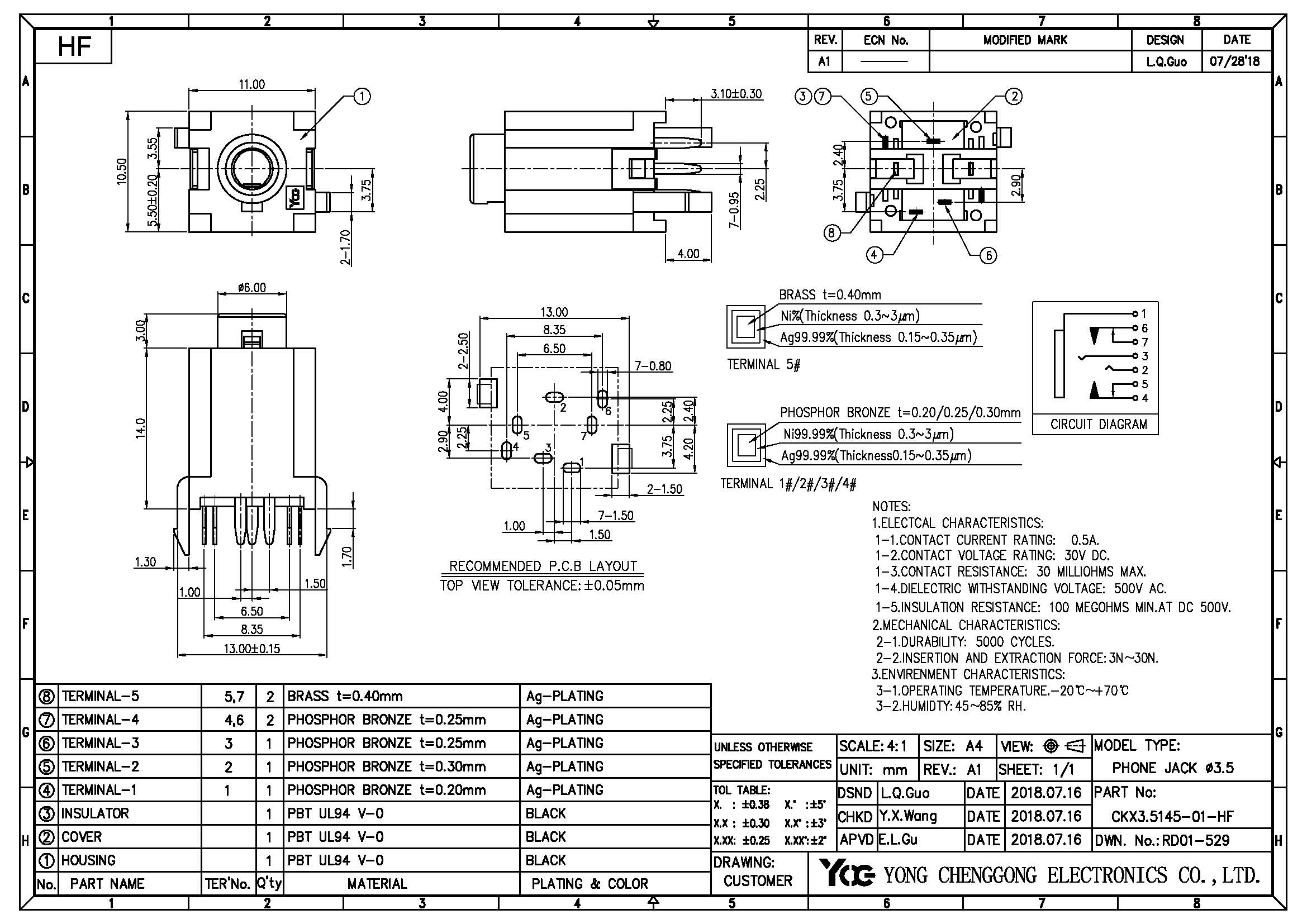 PHONE JACK φ3.6mm,V/D,H14.0mm,3 Poles,BLACK