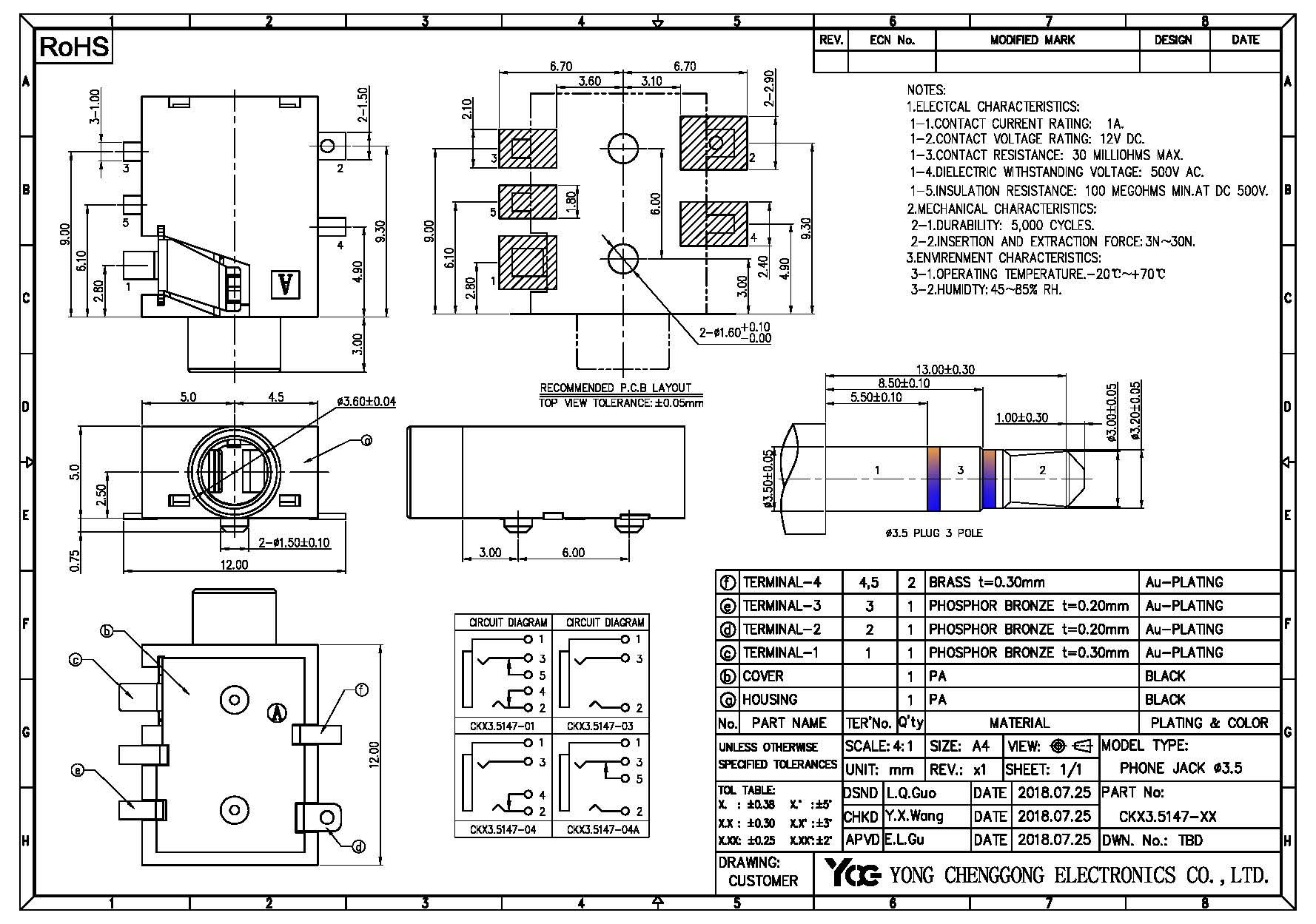 PHONE JACK φ3.6mm,R/S,CH2.5mm,3 Poles,BLACK