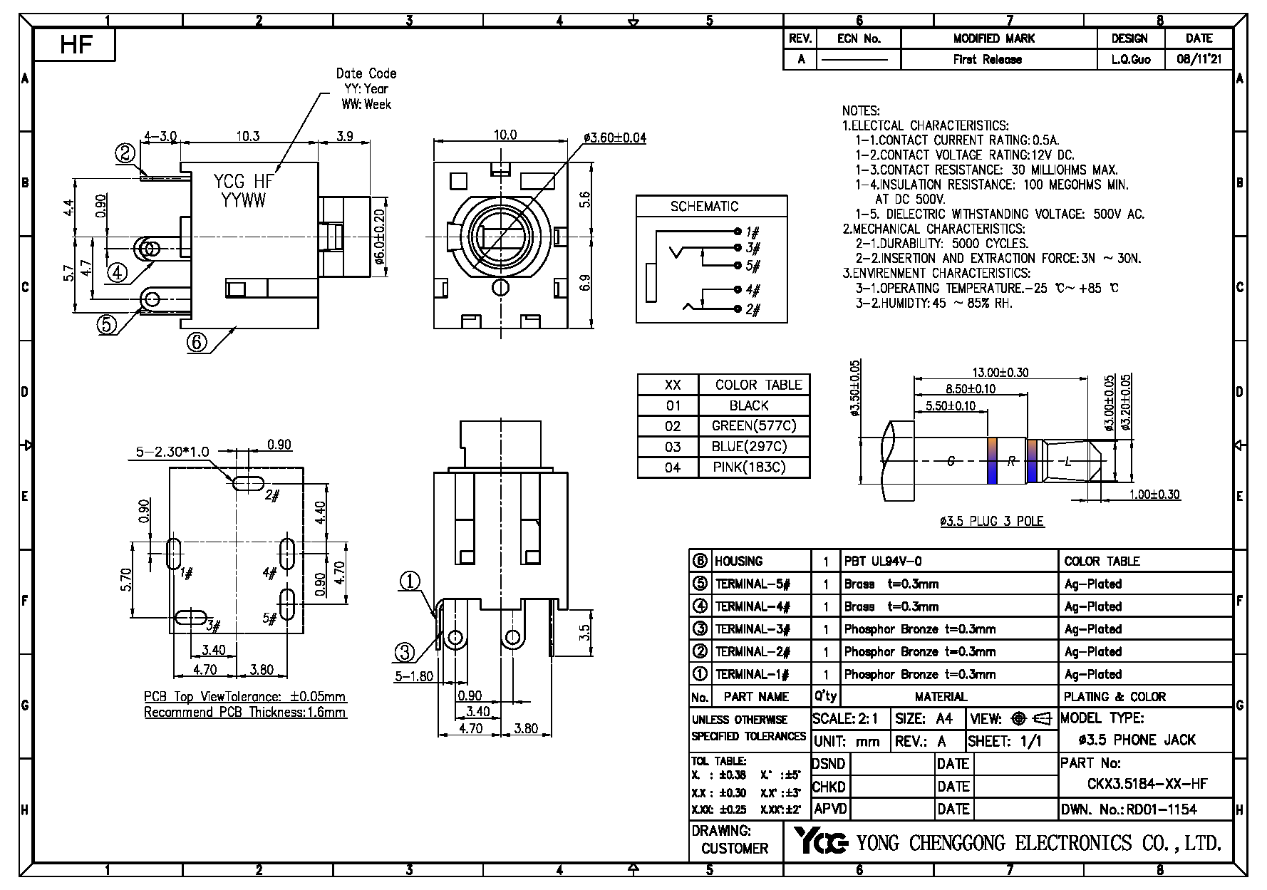 PHONE JACK φ3.6mm,R/S,3 Poles,BLACK