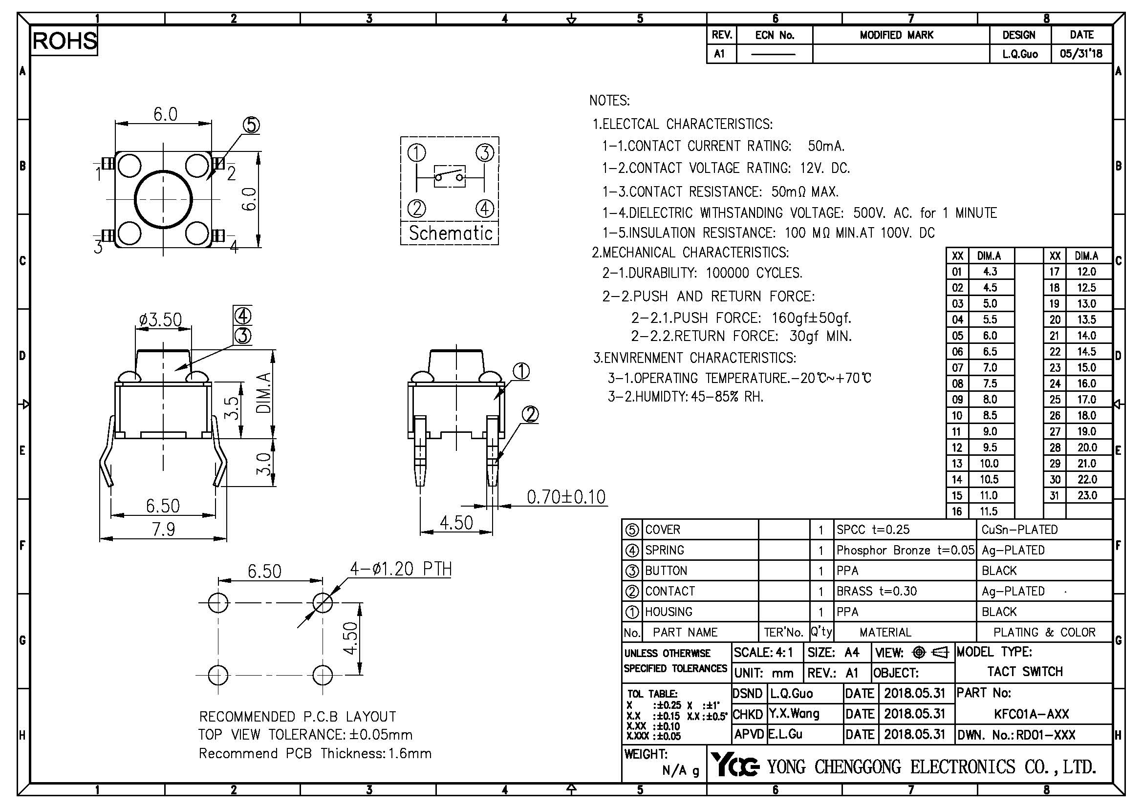 TACT SWITCH V/D H4.3~H23.0MM, 100gf/160gf/250gf±50gf,The Buttom is available in Red & Black