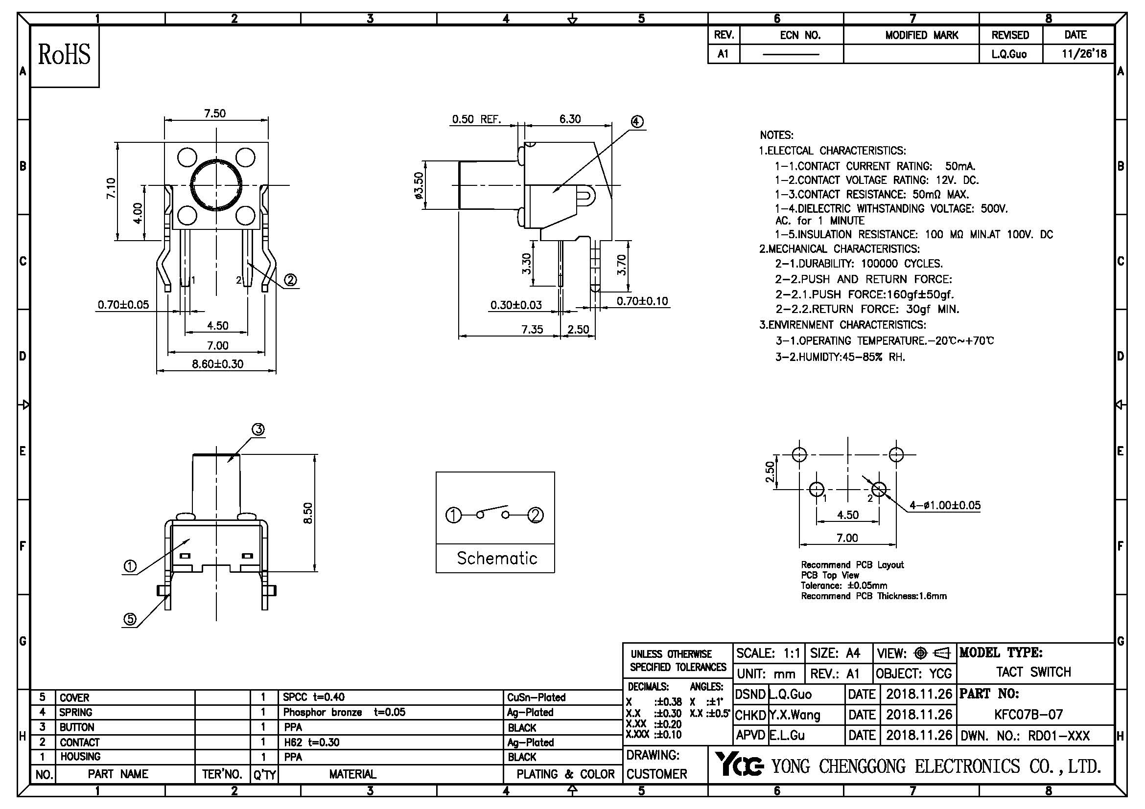 TACT SWITCH R/D H4.3~H23.0MM, CH=4.0mm,160gf/250gf/350