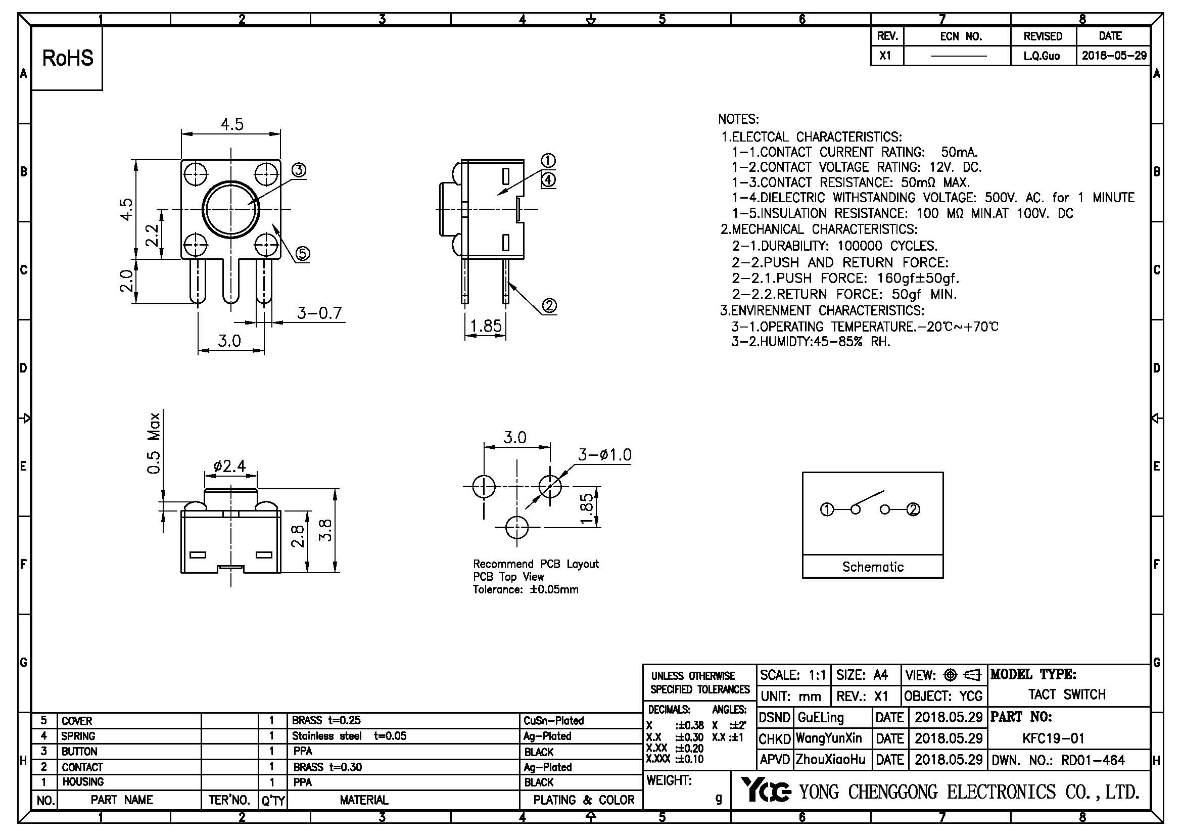 TACT SWITCH R/D H4.3~H8.0MM, CH=2.250mm,160gf/250gf