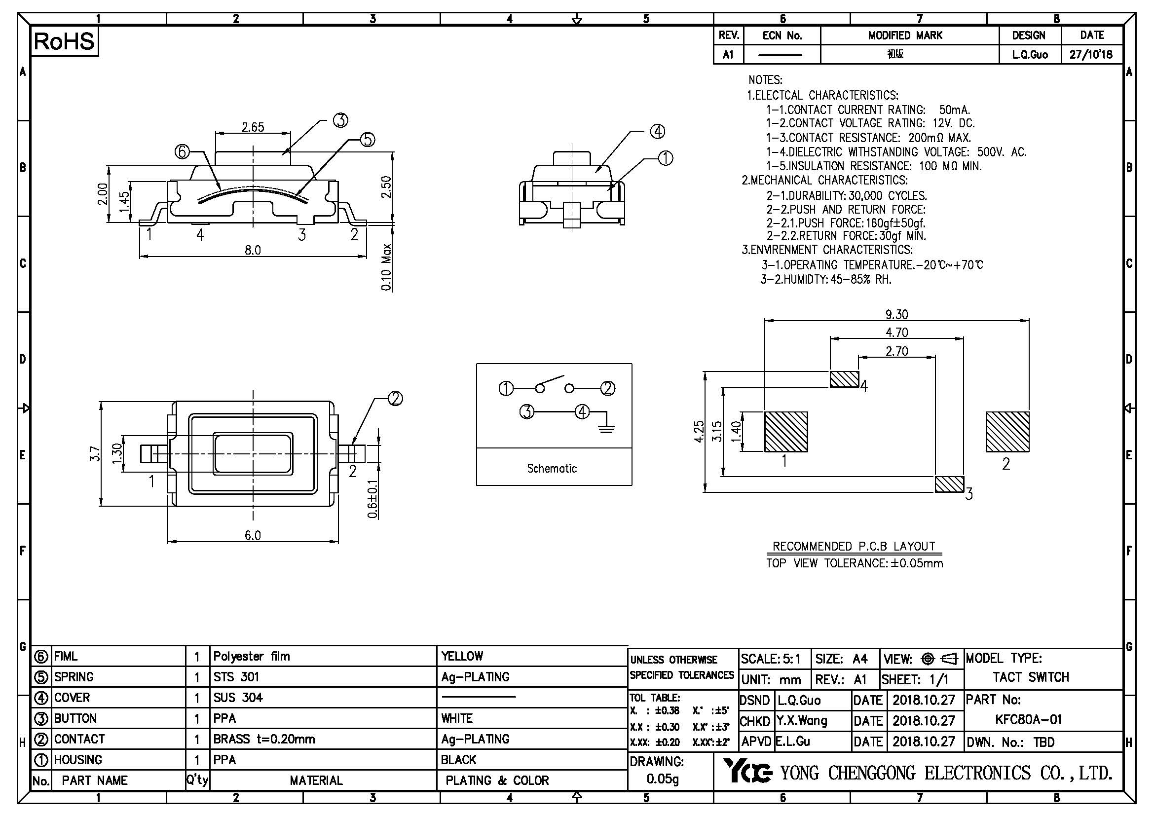 TACT SWITCH V/S,L6.1*W3.7*H2.5mm,160gf±50gf