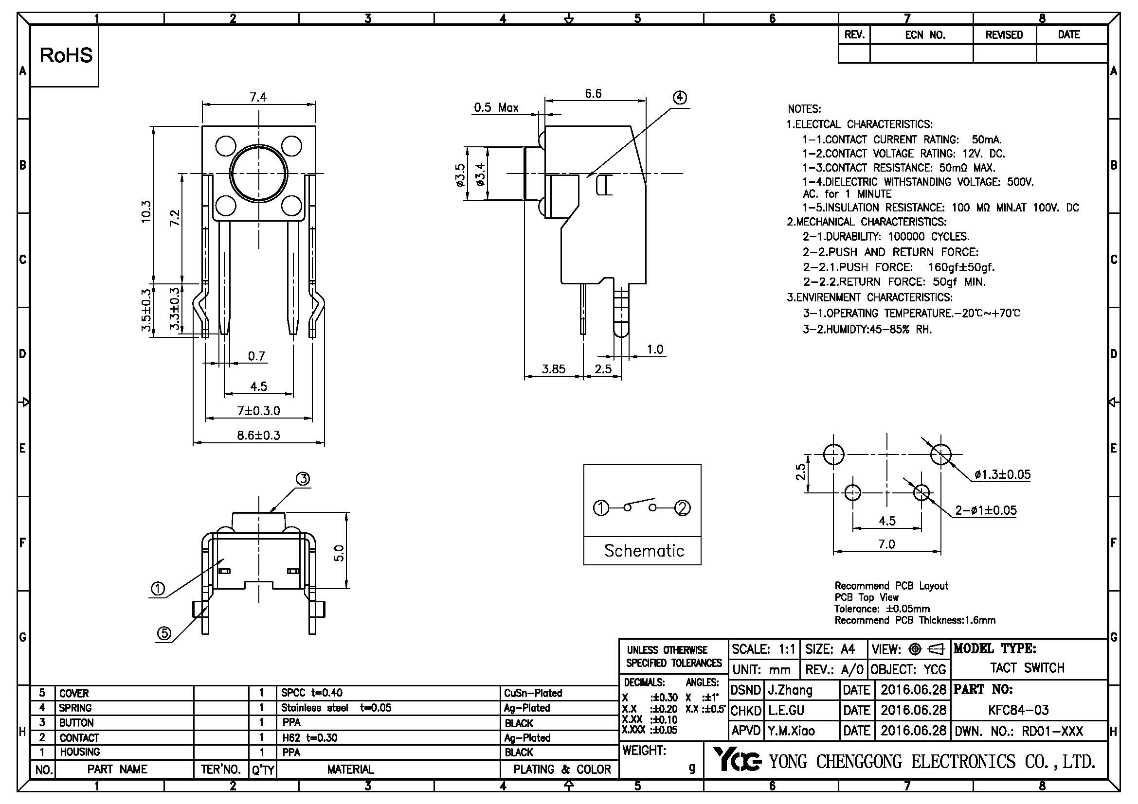 TACT SWITCH R/D,CH=7.2mm,160gf/260gf±50gf