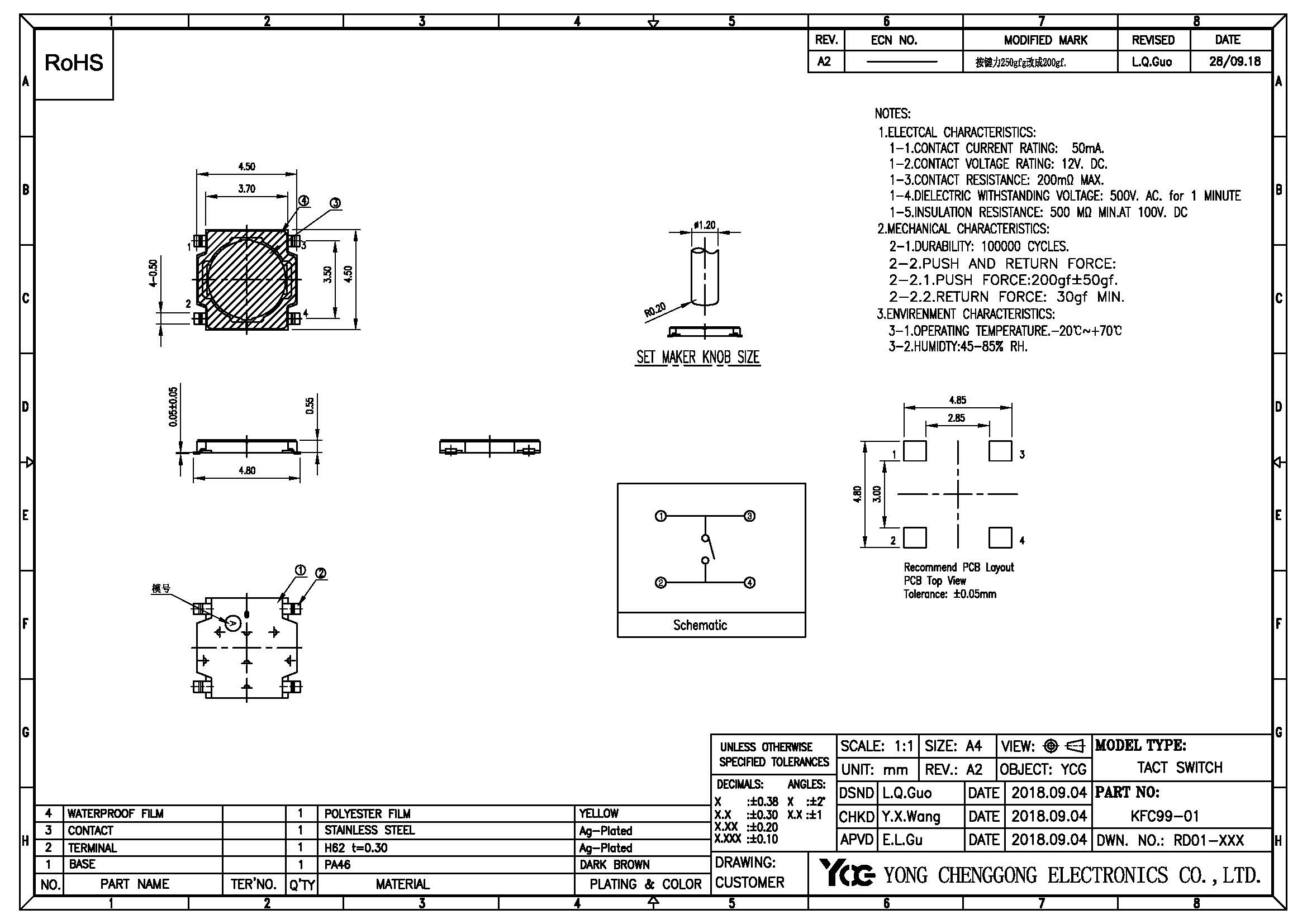 TACT SWITCH V/S,L4.5*W4.5*H0.55,160gf±50gf,Black