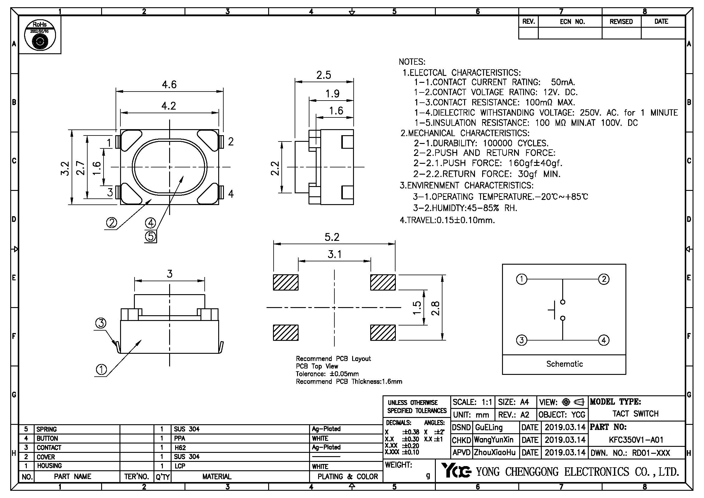 TACT SWITCH V/S,L4.2*W3.2*H2.5,160gf/250gf±50gf