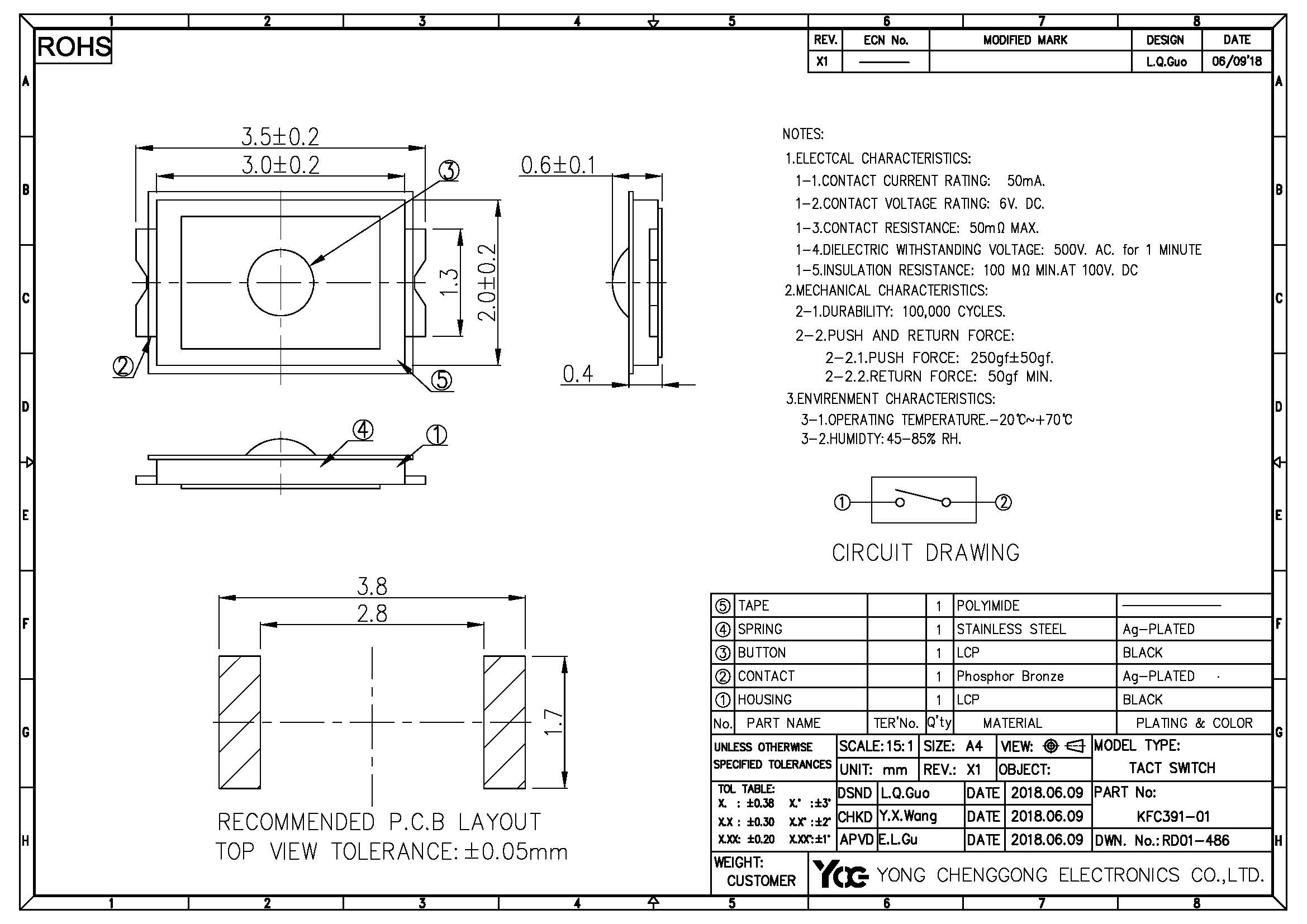 TACT SWITCH V/S,L3.0*W2.0*H0.6,250gf±50gf